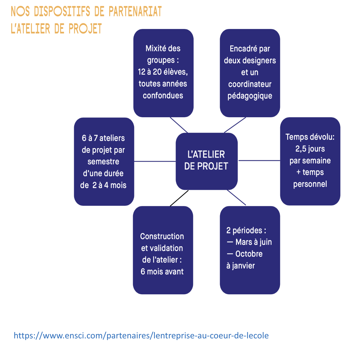 L'école a été créée pour adresser les enjeux des nouveaux mondes industriels. Avec cette raison d'être, l'ENSCI a développé une pédagogie particulière mixant projets, stages, missions, alternance, avec des partenaires industriels, des ONG, des institutions, des collectivités. Ceci permet d'explorer de nouveaux champs d'innovation par le design, et de former des professionnels capables d'embrasser la complexité et le changement.