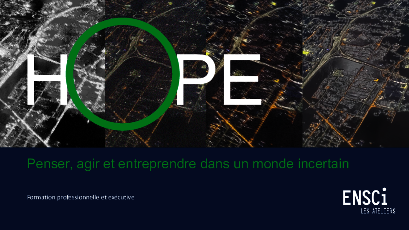 l’ENSCI – Les Ateliers vous propose HOPE, une expérience de remise en question par les sciences, l’art et les sciences sociales. En vous aidant à abandonner les idées reçues, HOPE vise à libérer et enrichir vos imaginaires pour vous aider à proposer des innovations radicales ou faire pivoter vos modèles d'affaires.