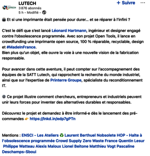 Le "Créateur de produits technologiques et durables" joue donc aujourd'hui un rôle clé dans la conception et le développement de produits innovants entrant en adéquation avec les objectifs d'un développement durable.